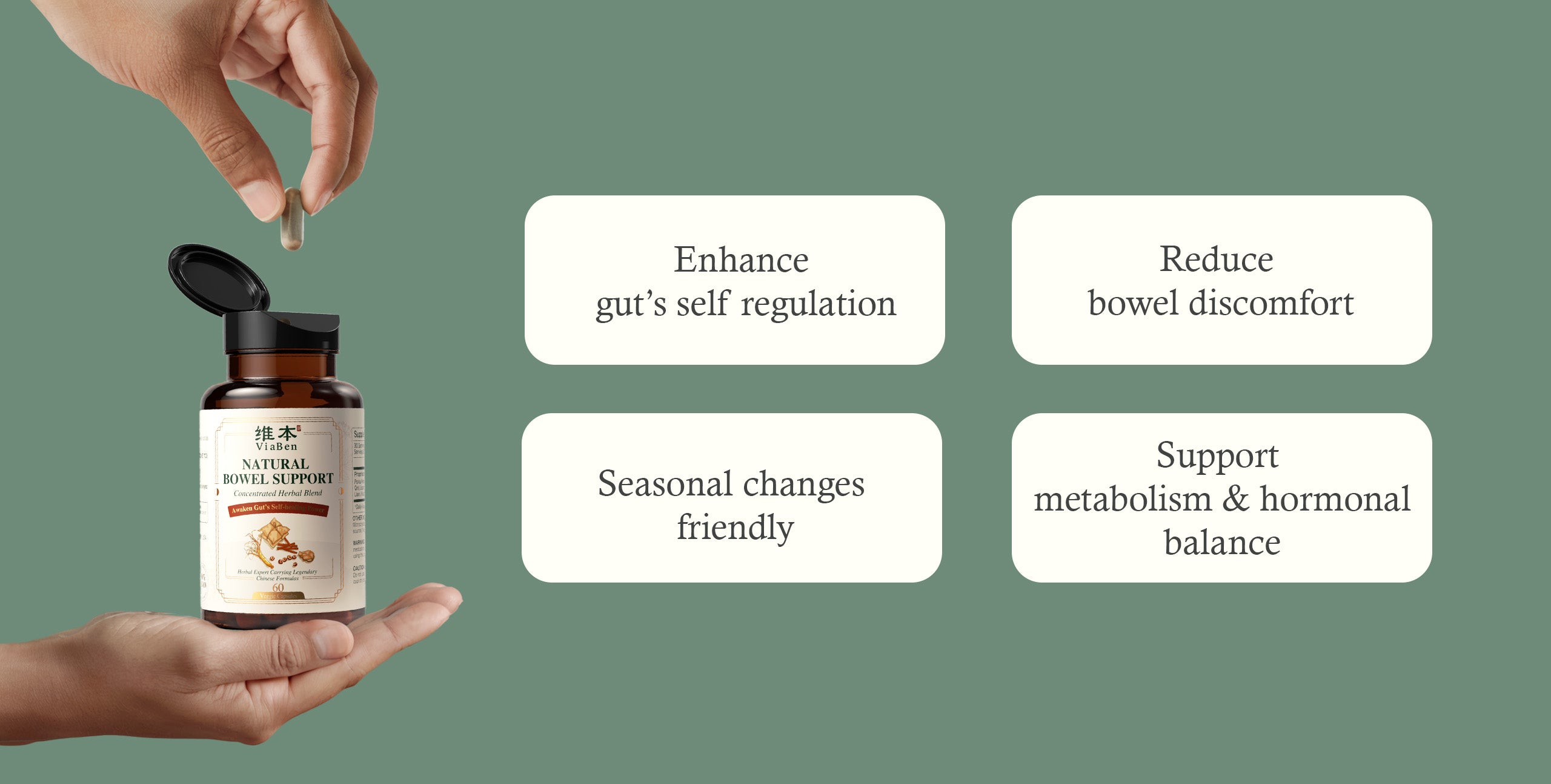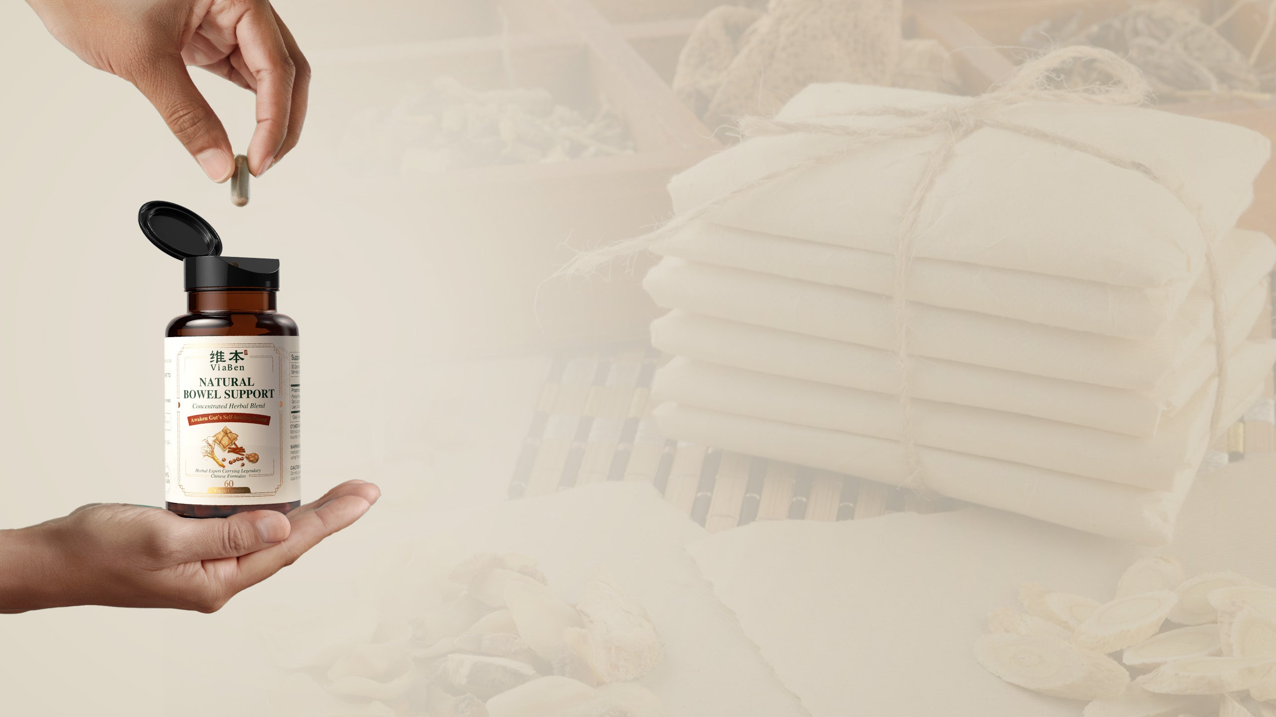 Each Viaben product represents this transformation: authentic Chinese herbal formulas reimagined for the modern world. Our Bowel Support supplement continues this vision — crafted to support digestive comfort and natural regularity through gentle, time-honored ingredients.